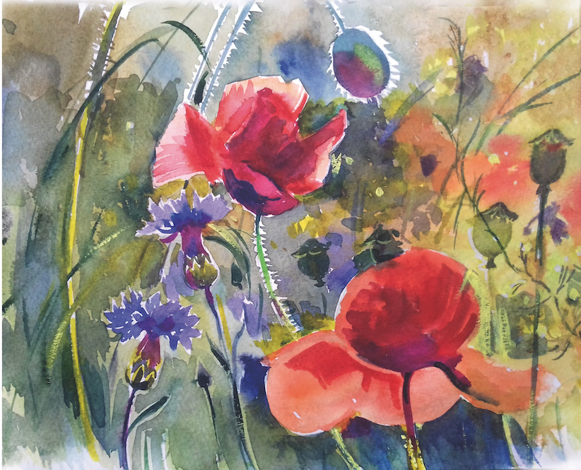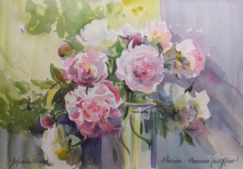 tworząc akwarelową kompozycję zostawiam dookoła trochę wolnej przestrzeni na kaligrafię. Mój malowany ogród oplatam sentencjami, łacińskimi nazwami oraz fragmentami wierszy.