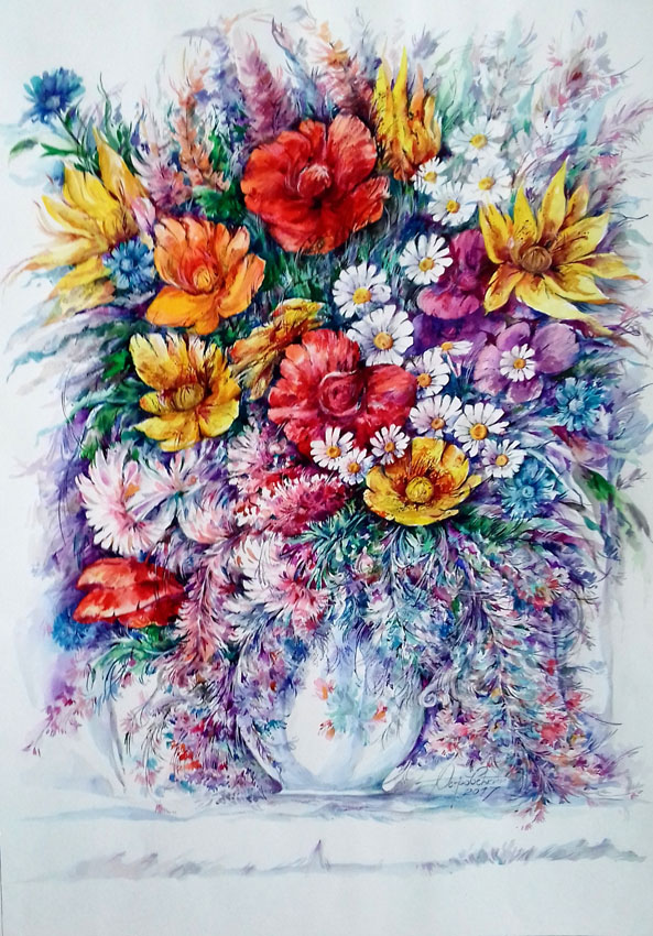 Uprawia malarstwo i rysunek.